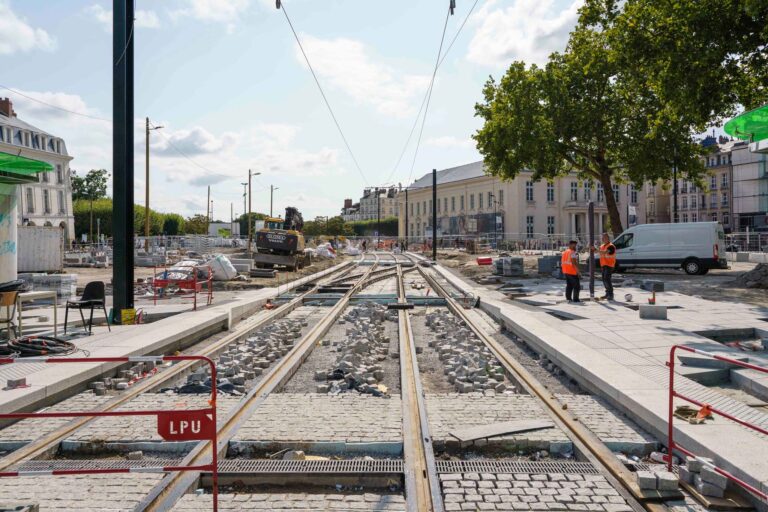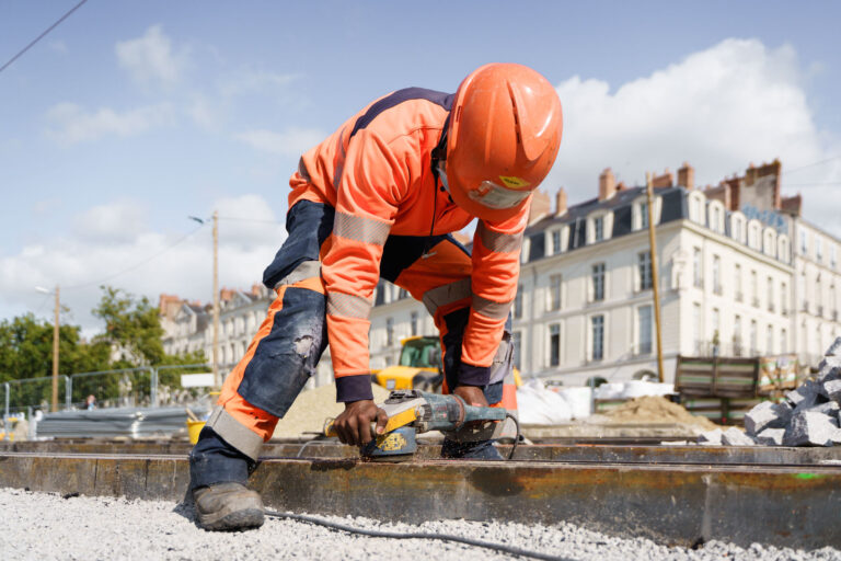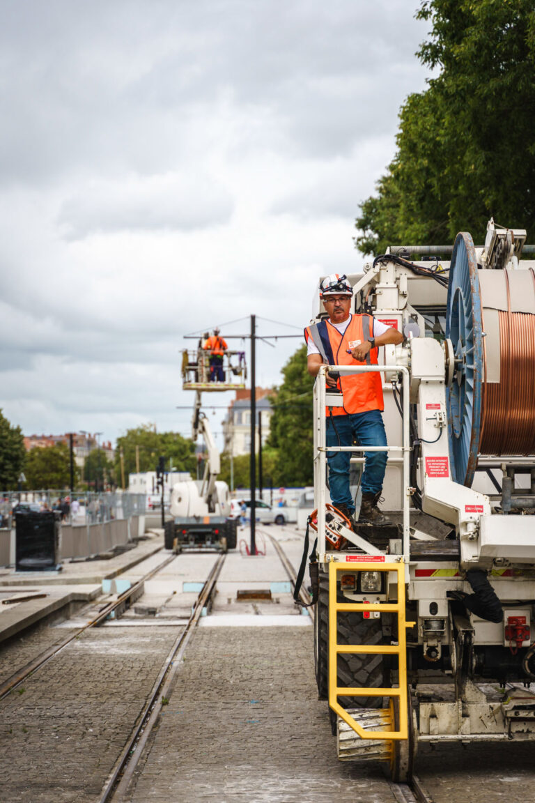 Reportage photographique professionnel pour le suivi de chantier de la SEMITAN à Nantes. Valorisation des infrastructures, des métiers du BTP et des projets urbains.